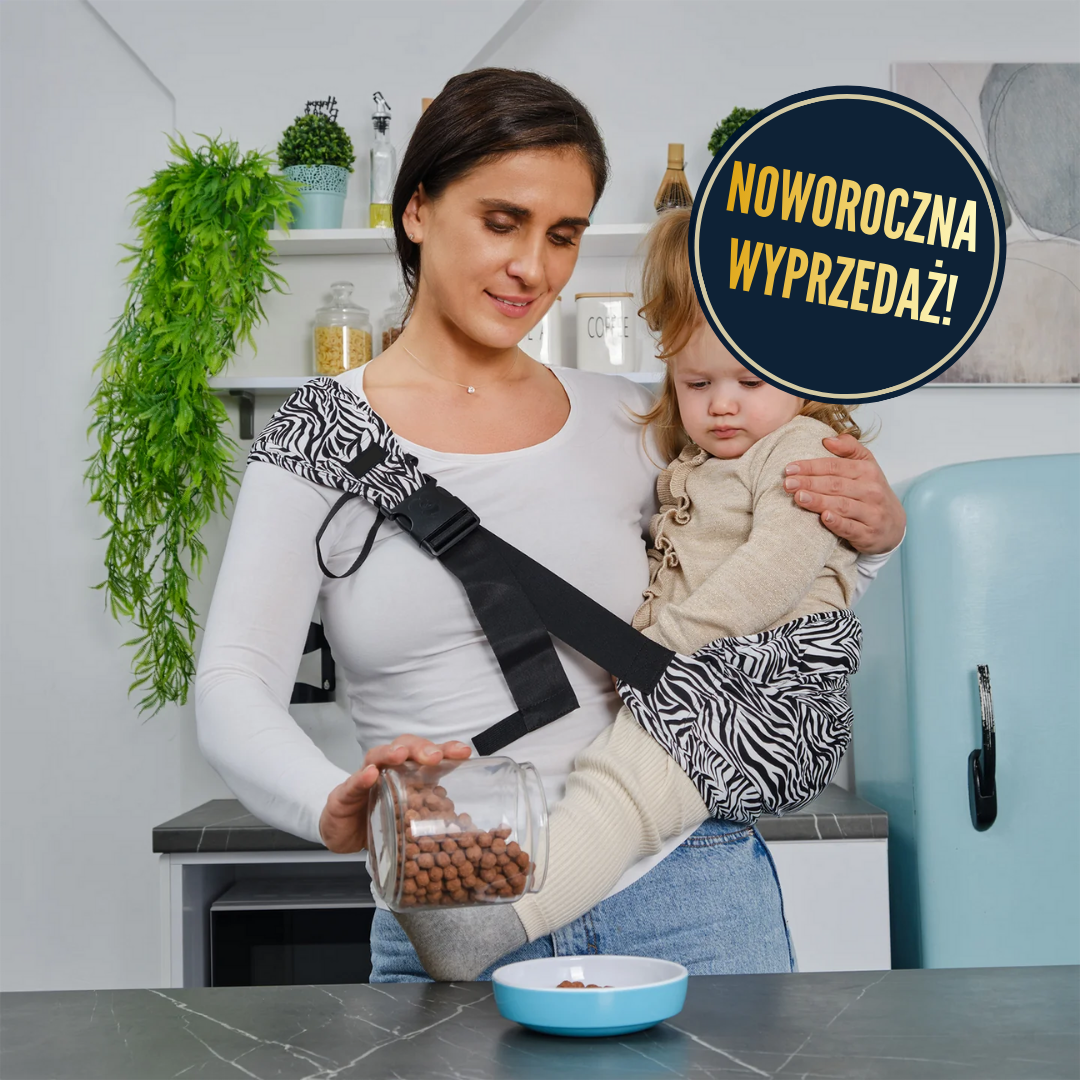 Nie! To właśnie najlepsza cecha naszego nosidełka w porównaniu do innych. Zaprojektowaliśmy je podobnie do chusty typu ring-sling, więc pasek opiera się na ramieniu — równomiernie rozkładając ciężar.